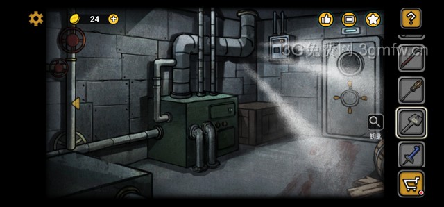 回到配电室,用菜刀隔来杜拉罕的嘴(更新记录)。点击后方的通风口,用撬棍拿到玩偶熊(更新记录)。