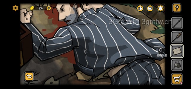 进入新区域后,点击白布发现使用手册。通过白色大门,发现尸体,点击金币(更新记录),获得厨房钥匙。掀开衣角发现绘本残页。(绘本残页全部放入绘本中解锁成就“恐怖故事”)