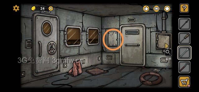 打开锁以后,发现卡特琳娜尸体(解锁成就“幸存者”)。点击缺了鞋子的脚和闪光,打开手掌拿到金币(更新记录),指纹解锁其手机。拿到船长室钥匙。