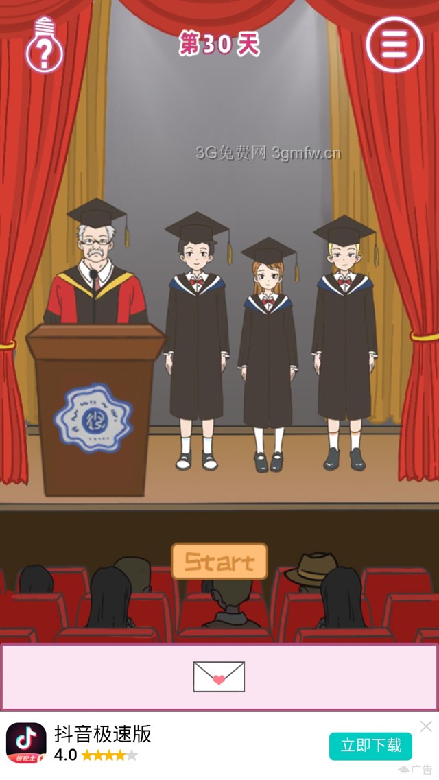 在男主帽子中获得信,给男主,按start即可