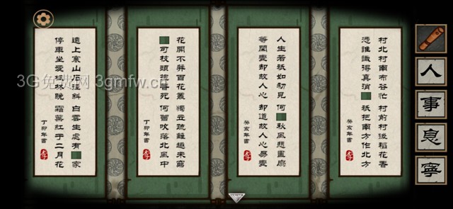 5.根据柜门上的数字提示,提取右边4张字中对应的字。⑤分别为:人、宁、息、事。