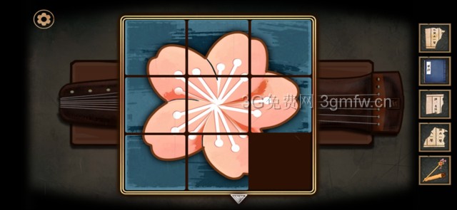 4.点击琴的最右侧(琴头小方框)把暗格碎片放入其中,交换位置拼出梅花。把情书和珠钗放入暗格中,给黄衣夫人开门。
