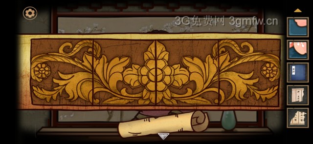 1.搜索:①琴谱残页1(左边花盆底下)②暗格碎片1(左边红色柜子第一个抽屉)③钥匙(粉衣斜刘海女二脖子上)④有画木块1(女二桌上获得)⑤暗格碎片2(点击撕破墙上荷花画)⑥《琴谱》(书架上获得)⑦琴谱残页2(书架红色的《礼》中获得)⑧有画木块2(书架下第二柜子中获得)⑨有画木块3(床前灯下获得)⑩琴谱残页3(床上第一个枕头下获得)