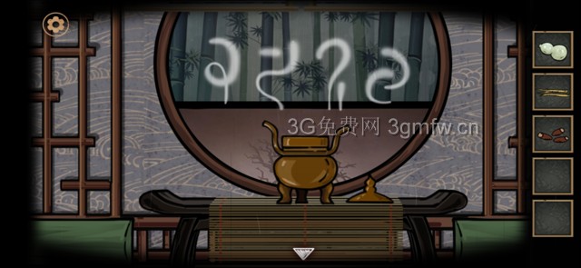 6.把玉葫芦给男主摔碎,用榔头咋开墙上裂痕。滑动输入白烟提示的字符。就通关啦~~