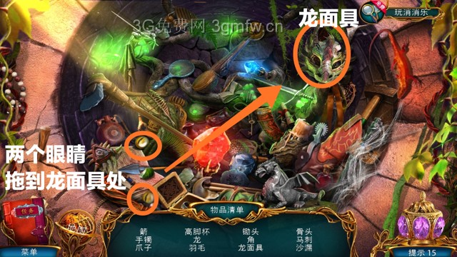 然后触发机关,点击新出现的物品得到钟锤,去敲钟得到石头,贝壳和入口细节这时已经得到所有入口细节回到原来美女的地方把入口细节装进凹槽完成小游戏下面有视频