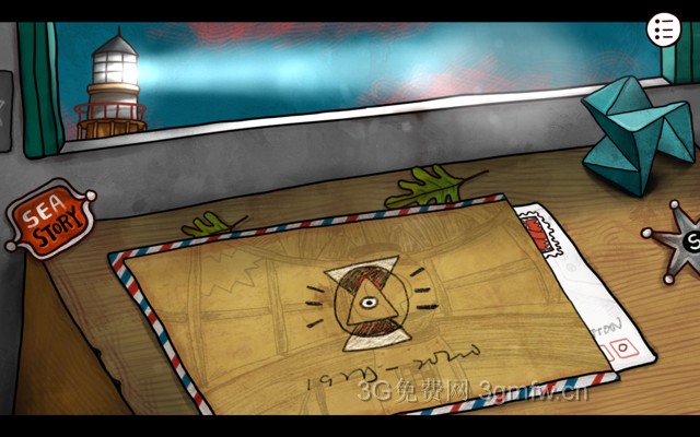 点击拾起小刀切割信封,露出里面的明信片,点击明信片开始游戏