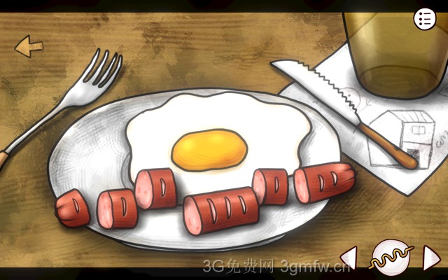拾取金属丝和小刀(这里我在刚进来的时候就把金属丝拿走了,补了个图),看香肠上的条数,这里是大门密码,111312。