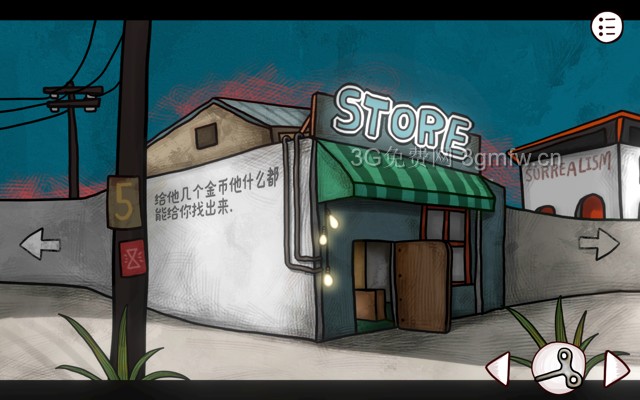 下一个场景是商店,看墙上的独白得知店主喜欢钱,要从他那里得到东西需要金币。