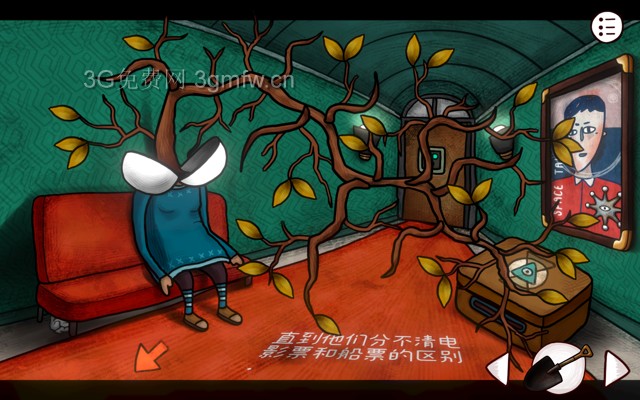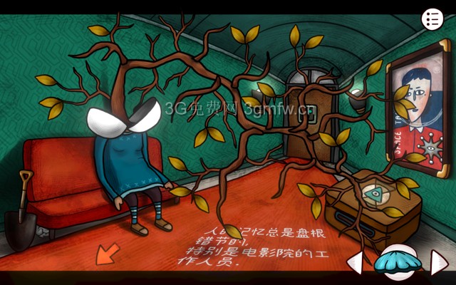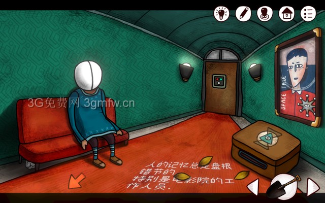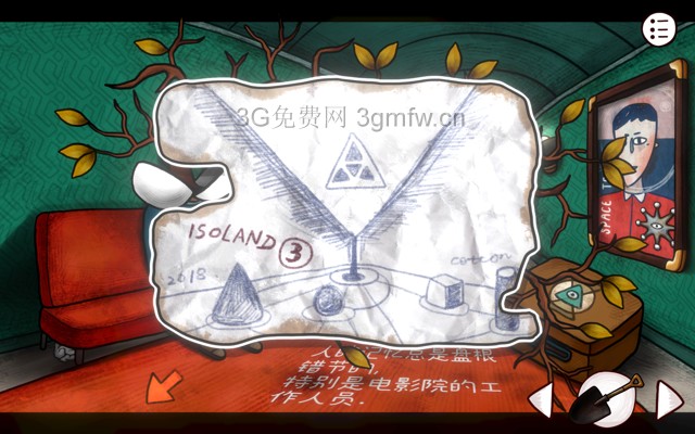 进入电影院,拾取铲子椅子下揉成一团的海报是迷失岛3的场景。