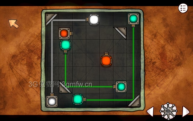 里面门上的装置,外形为方块的不可以动,圆形的可以动,射线会阻碍移动。如图,下一步将红色块右移一格即可。