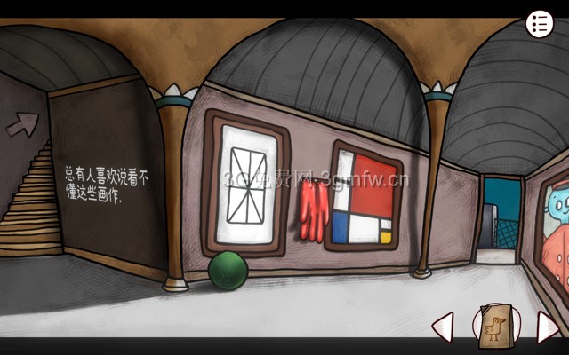 进入画廊,给墙上的画填色,模板在家里的二楼,右侧那幅画是一幅名画,相信大家都见过,它也是火车站那位先生报纸填色的模板