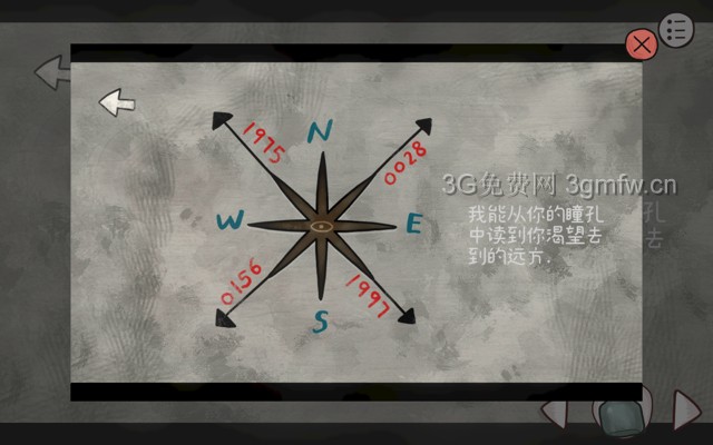 四个数字分别对应四个前作人物,根据旁白可知,密码方向为瞳孔方向,年份数字都标在图上了(顺序逆时针)