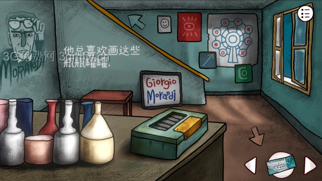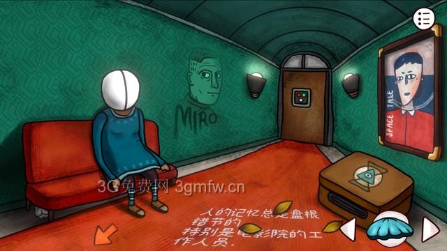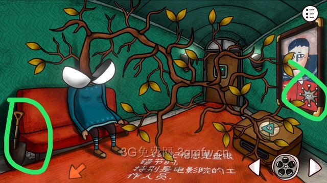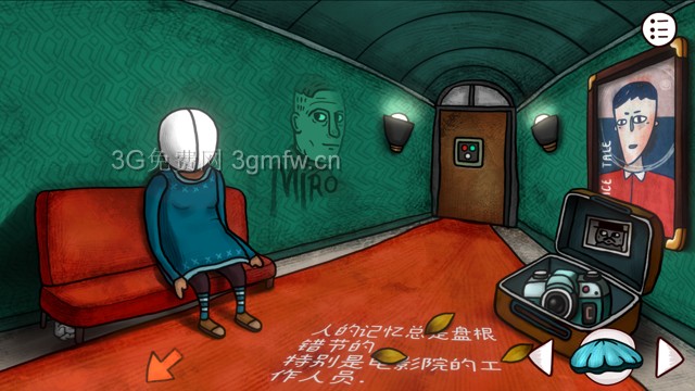 上楼,把发条装在男孩的头里,点击发条,获得电影院大门密码(灯泡的颜色就是密码)