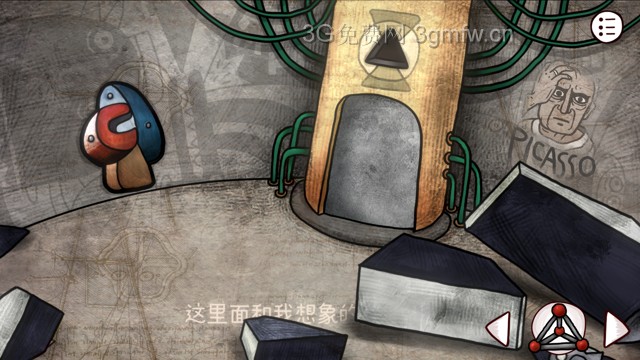 用之前的红黄蓝石头放进凹槽,把三角石头放在门框上,点击空白处,获得成就