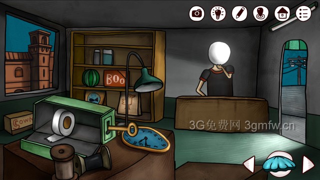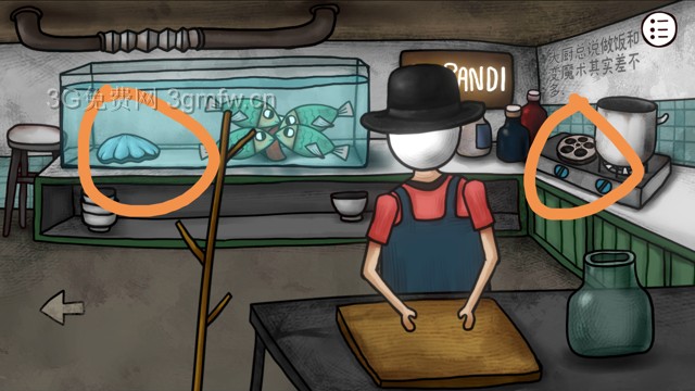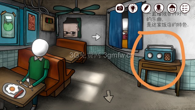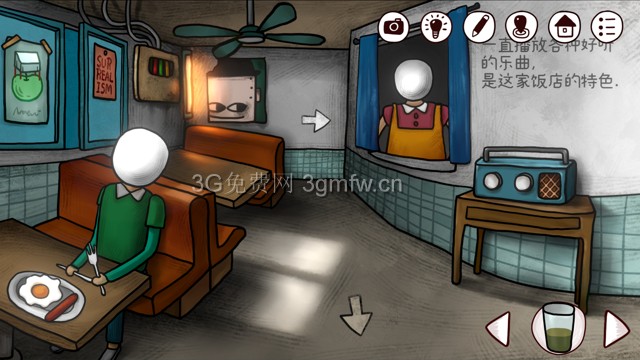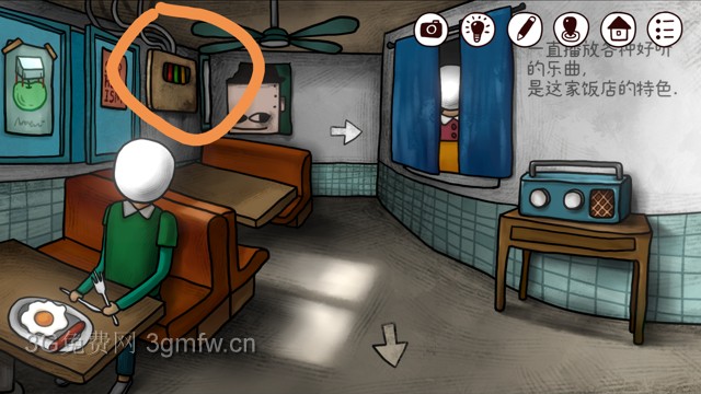 首先进入餐馆,获得①贝壳②录像带③金属丝④钥匙⑤瓶子,(在厨师旁,忘圈了)