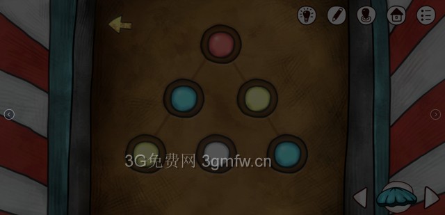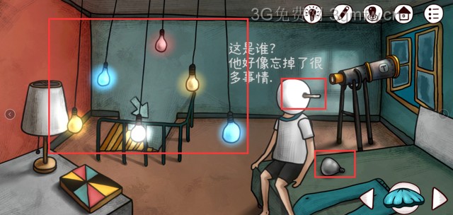 到餐馆往左走 用火腿上的符号打开门 直接上二楼 拿到灯泡 把发条插到人的脑子里 然后记住灯的颜色