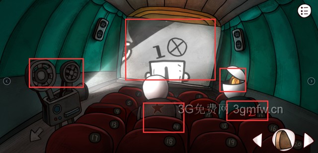 录像带放到放映机里 点右边人的头拿到金币 记住屏幕上出现的符号并且记好这两个人的座位号 星星14号 绿衣服14号