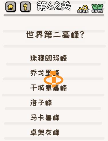 世界第二高峰是《挑战小学生》第62关的问题,很多网友不知道答案是什么,下面小编给大家带来挑战小学生第62关攻略。 问题:世界第二高峰? 答案:乔戈里峰(世界第二高峰-乔戈里峰海拔8611米) 老友网www.andlaou.com免费为你分享
