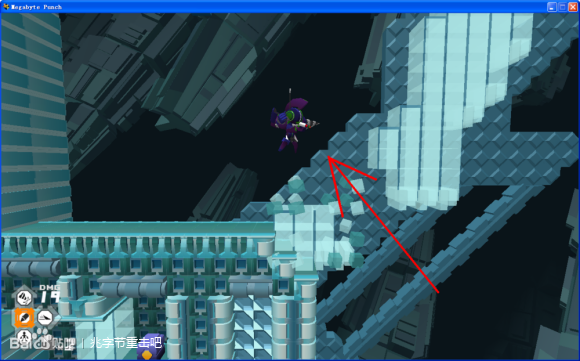 5、往右上走到这个位置,向右上驱动钻头,到那边的平台上。