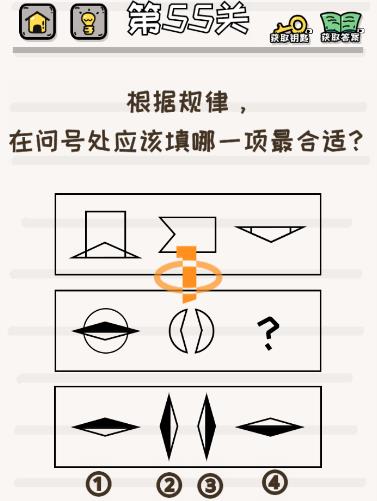 根据规律在问号处应该填哪一项合适是《挑战小学生》第55关的问题,很多网友不知道答案是什么,下面小编给大家带来挑战小学生第55关攻略。