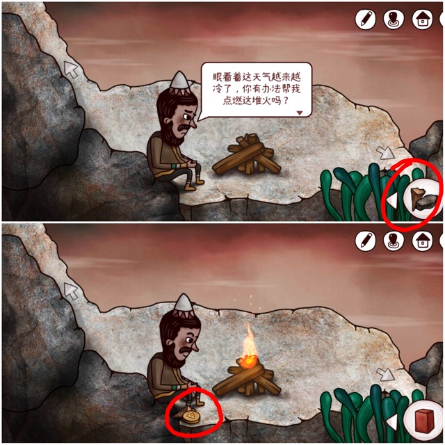就到这里啦嘿嘿。把打火石给他,点燃火堆之后他就会把硬币给我们。