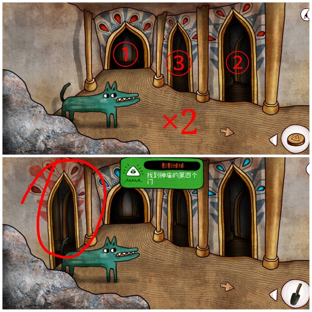 这个时候我们主要是要找到第四扇门然后进去。(按照我标的123的顺序,每个门都点两下然后第四扇门就出现了)