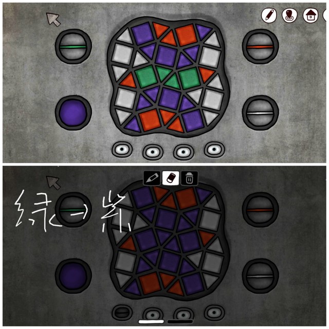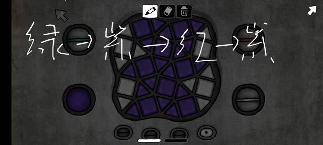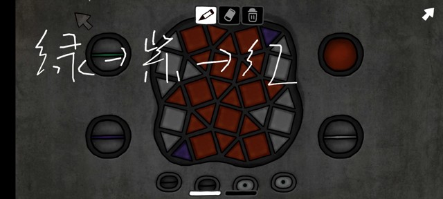 这个解锁我感觉有丢丢麻烦。 按钮作用:点哪个按钮就可以变成哪种颜色解锁方法:简单来说,最后都变为同一种颜色就可以了。但因为这个解法很多,具体的只能靠大家摸索一下下了∑( ̄□ ̄)以下是我遇到的情况及其解锁方式: