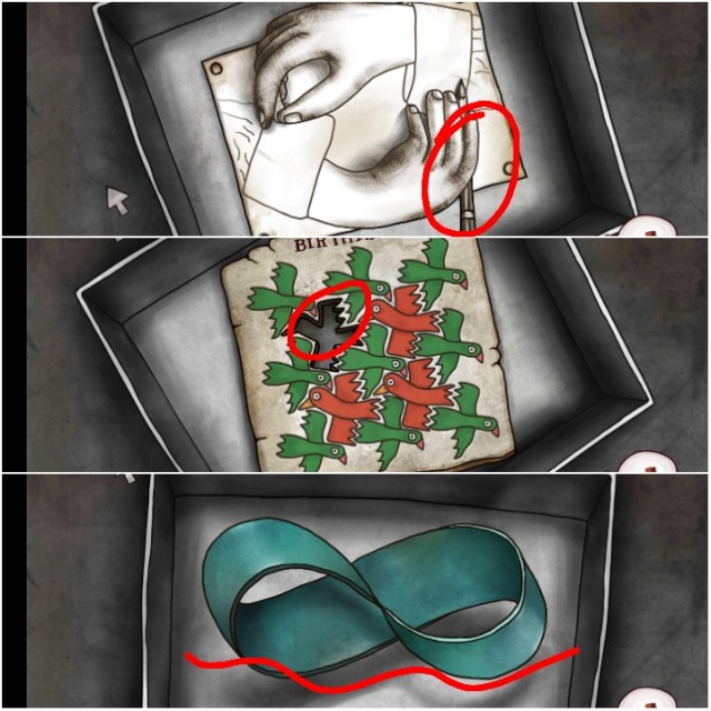 点击桌子上的三个小盒子,它并不是装饰用的。里面三个盒子里分别有我们要找的物品的提示(铅笔,鸟,蚂蚁)接下来我们又要踏上寻找物品召唤“神龙”的旅途啦~