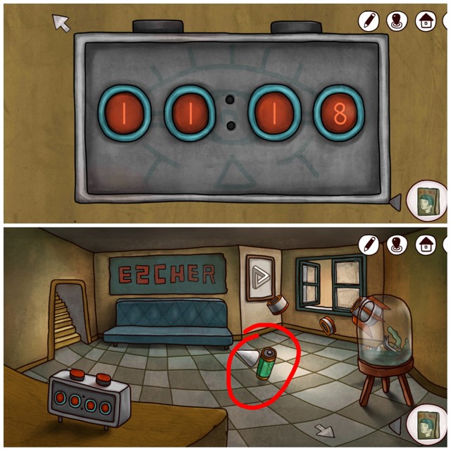 再回到之前拿面包的那个房间,点击我圈出来的那个门,会出现需要我们解锁的东西