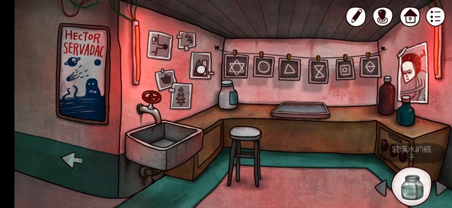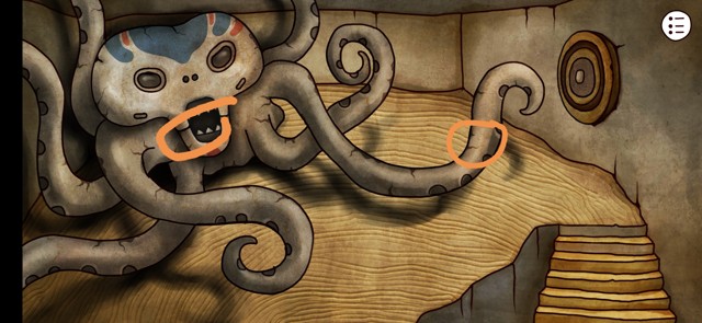30再去第四扇门内如图放好,点击下就开了31骨头放到怪物断了的触须上,得到不规则圆球32点击右边的圆形解答如图33圆球到山上放到火上,得到圆球。34取回方块,去山顶放上。如图下