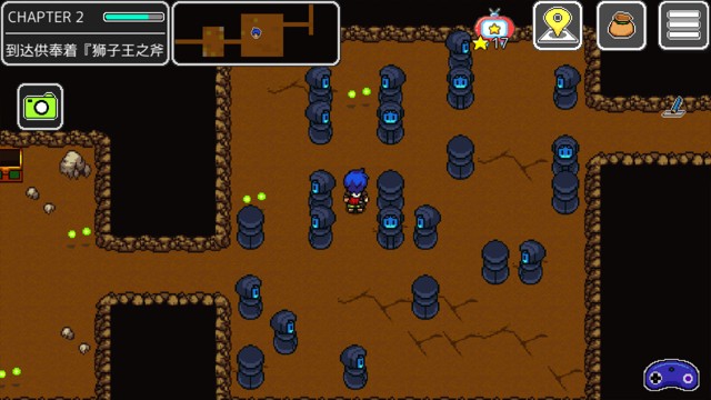 此时再次重新进村,注意要躲过别人的视线,不要出现在别的NPC视线范围内,从长老家的外围绕过去,一路向东走。然后走进一个山洞里。到了山洞继续往里走,到了下图的这个石头阵里。注意要避开石头人的视线潜行,如果被石头人直视,则会回到起点重新开始。通过石人阵,会被一块圆的巨石追赶,只要一路向上不停就不会被巨石碾压。然后再向右走又会遭遇巨石,这一块躲不了,被碾压后会掉大约一半的血量,记得及时回血就行。通过这两块巨石,前方有两个宝箱。是卡特蕾娅的衣服和武器。