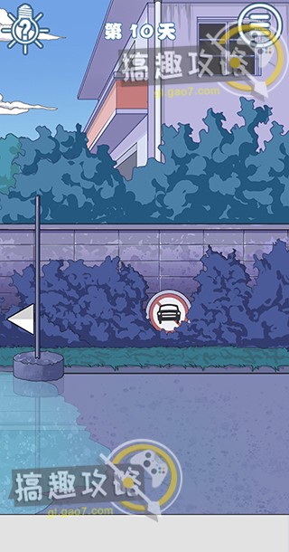 切换到右边场景,在树丛里拿到禁止停车牌。