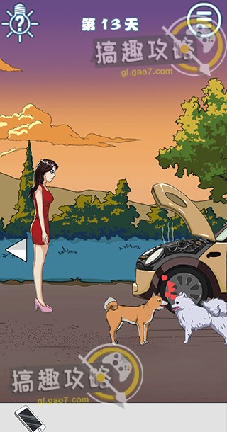 切换到右边场景,打开汽车引擎盖,再拿到狗狗头上的蝴蝶结。