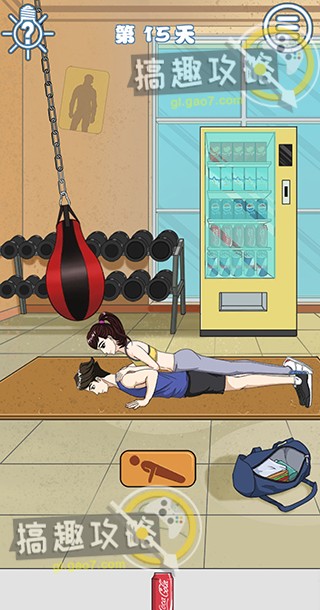 趴地准备做俯卧撑时,将沙包挂在铁链上点击晃动,最后再点击开始即可。