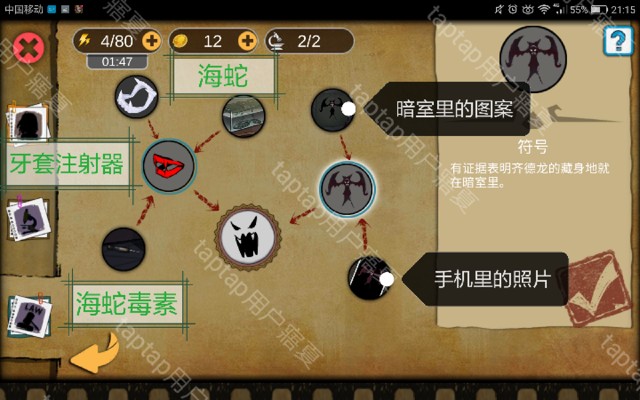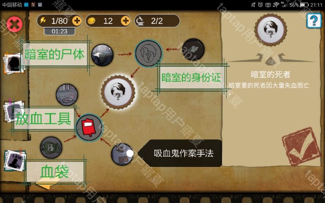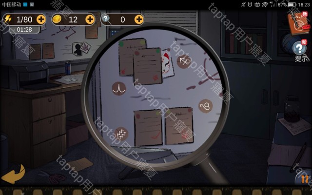 地下室X光片投影灯的左上角的罗马数字对应右下方保险柜密码5423,打开点击得到线索“手套和假指”