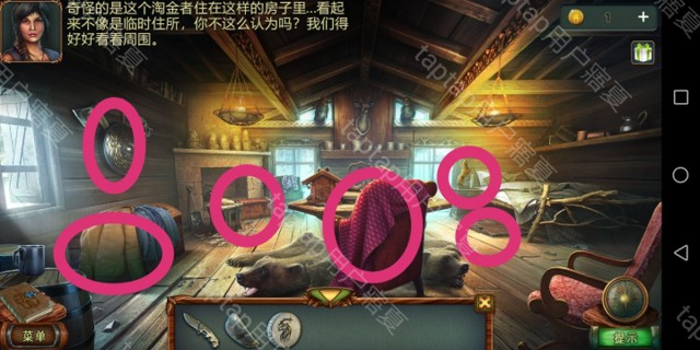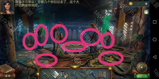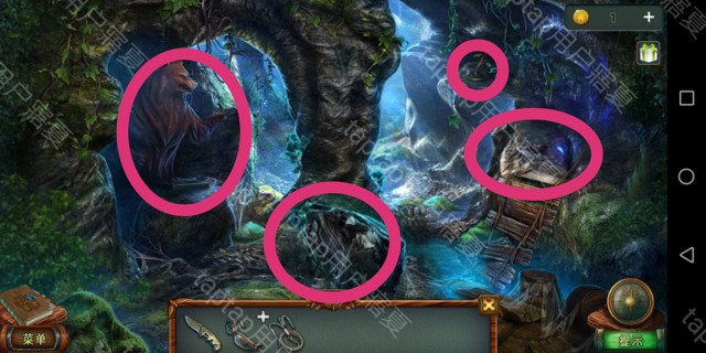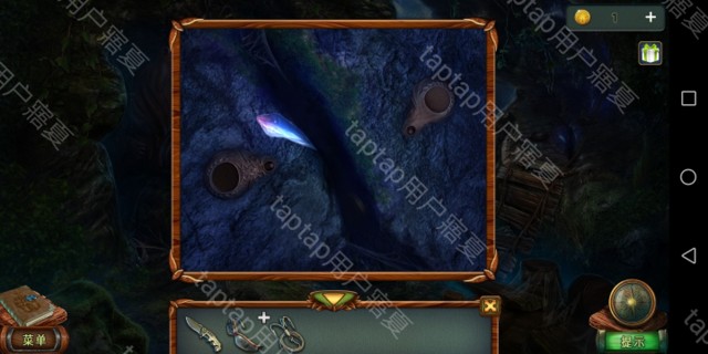 点击右方,点击狼牙,掉入后用打火机点燃两侧,用刚得到的钩子勾出印章,再勾出狼牙