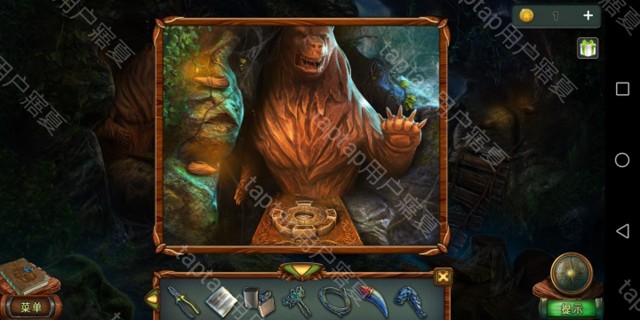 用打火机点燃熊雕像左侧,点击雕像下方圆孔,得到木头叶子