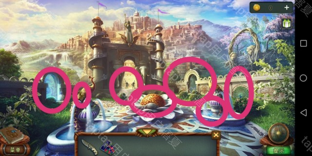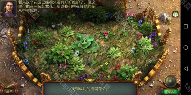 回初始点,右侧孔雀池里钩子拉盖子得钥匙,钥匙开铁门处房子,拿空瓶子和园艺剪刀
