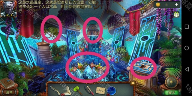 回到建筑外,右侧放上提灯,得到线索和行星,花苞形体的门上放上水晶树枝,开小游戏,进入