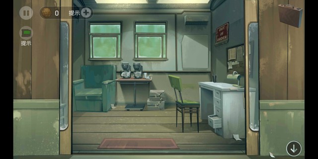 8. 先退出列车员室再进去,会发现两个列车员都不在了。我们拿上墙上的警示板,桌子上钢笔,清单和下面抽屉里的钥匙。