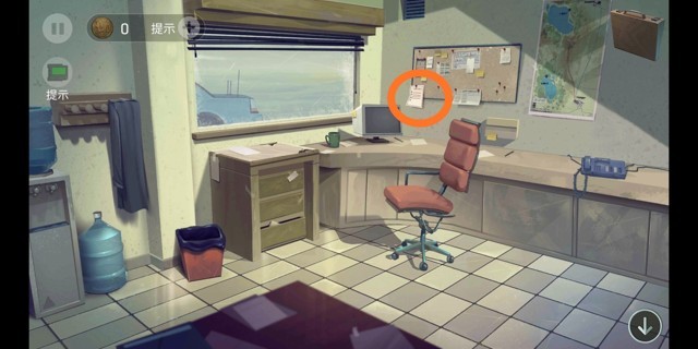 5. 从机场正面进入办公室将危险药物放入咖啡杯,取走后面板子左下角的检查表,由墙上地图可知红色飞机不飞往医院。离开办公室。