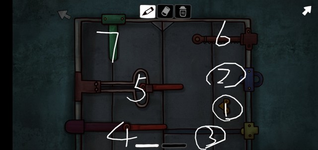 进入第四删门,点击获得灯管,(点击sun得到一个星球纸条),左边门的图案密码是三个门中墙上的密码,为:(与一周目不同)