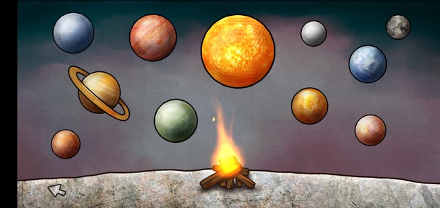 左边盒子放笔,(点击pluto得到一个星球纸条),中间盒子放拼图,右边盒子放蚂蚁