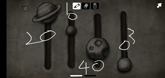 点击红色楼梯,下到船底(船底场景),(点击earth得到一个星球纸条),记住3的图案