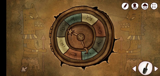回到山洞内室场景,用铲子挖图得到圆锥形,出来顺便把内室门口凹槽里的正方形拿走