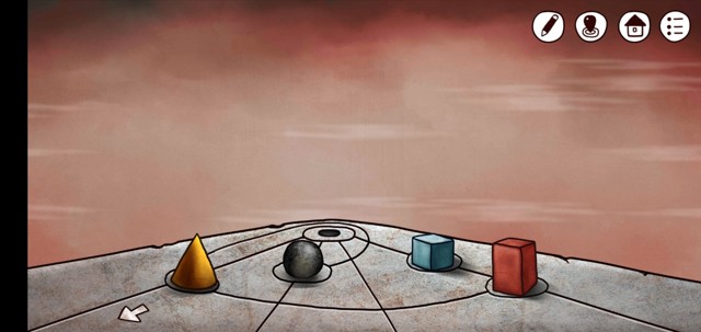 根据在甲板上看到的天上石头的提示和山洞门口路牌提示,到悬崖上,点击向前箭头,根据提示摆放: