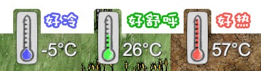 温度计的刻度在中间(显示绿色),25℃左右,温度最适宜,饿得最慢。越冷或越热,饿得越快。