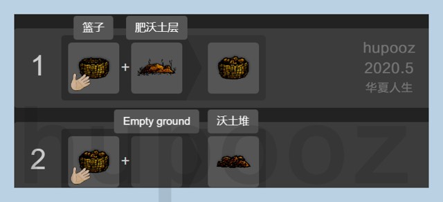 前期:肥沃土层(在绿草地),天然资源,不可再生,需要用篮子/背包舀。