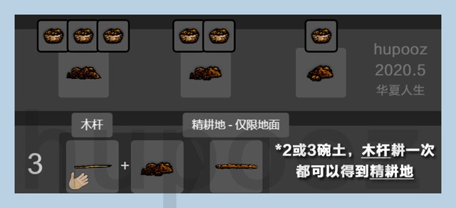 用耕地工具(木杆/石锄) + 2碗土 → 精耕地