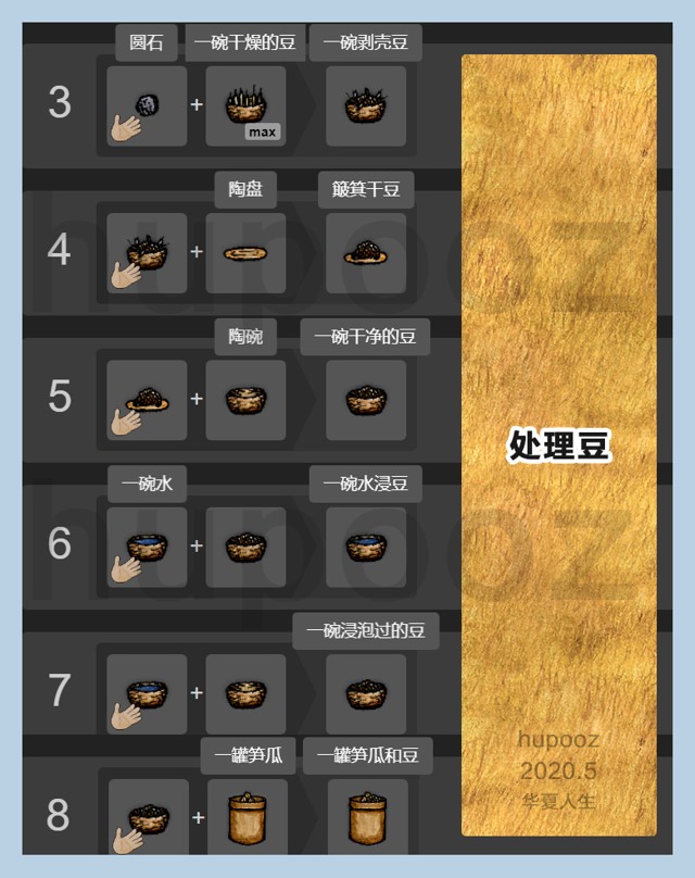 材料:陶罐、2碗1盘、水、生个火;玉米、南瓜、豆